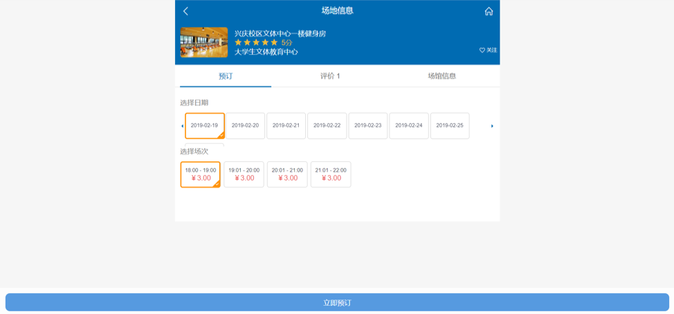 Step 5: Choose the date and proper time. Then click 立即预订 for booking at the bottom of website (The website show the price 3 yuan, actually, we pay just 2 yuan).