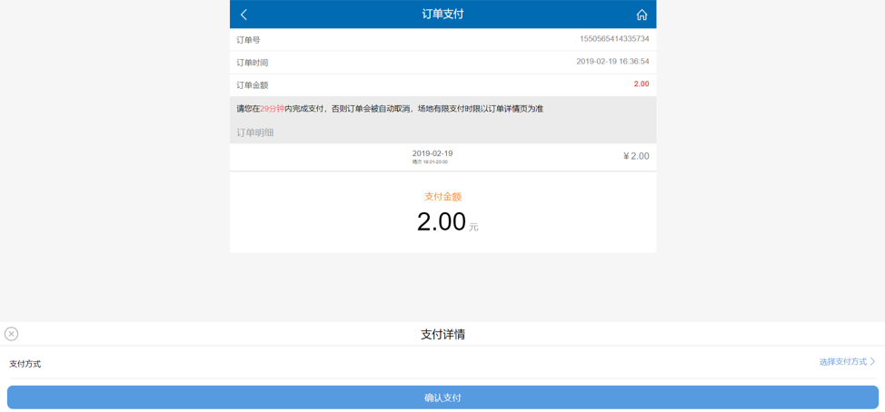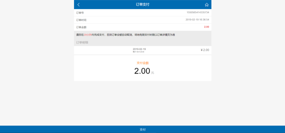 Step 6: After booking, we have only 30 minutes to pay. If you are sure about the time to use the gym click 支付 at the bottom of website to pay